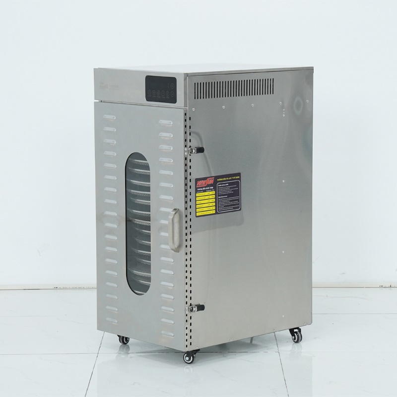 Đặc biệt, các khay sấy được chế tạo hoàn toàn từ inox 304, vật liệu không gỉ sét, bền bỉ, có khả năng chịu nhiệt và truyền nhiệt cực tốt, đảm bảo vệ sinh an toàn thực phẩm.