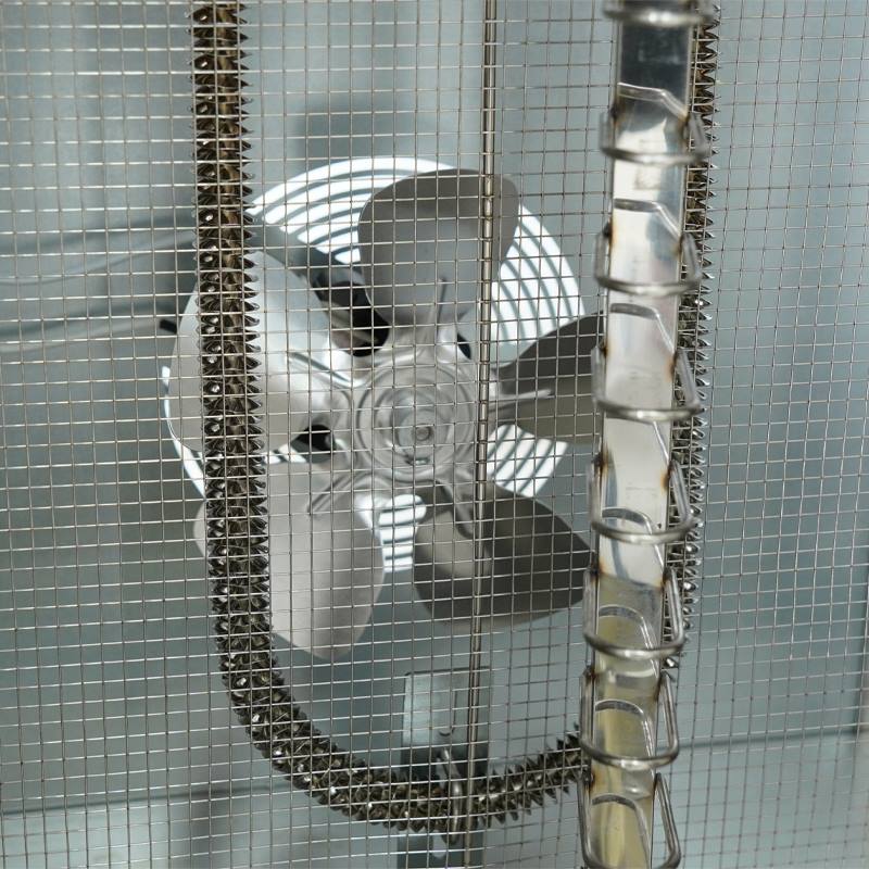 Với 20 khay sấy có dạng lưới, đường kính 37,5cm, chiếc máy này có khả năng sấy được một lượng nguyên liệu lớn chỉ trong một lần vận hành. Các khay được bố trí cách nhau khoảng 5cm giúp tận dụng tối đa không gian sấy mà vẫn đảm bảo đủ khoảng trống cho luồng nhiệt lan tỏa, giúp nguyên liệu khô đều.